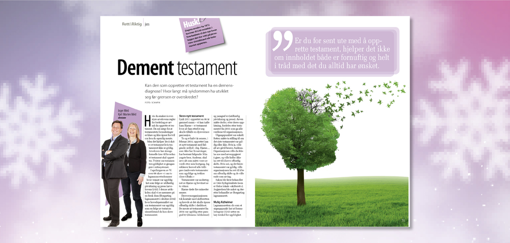 Noe av det mest verdifulle du eier vil du kanskje testamentere til etterkommerne. Men kan den som skriver et testament ha en demensdiagnose? Hvor langt må sykdommen ha utviklet seg før grensen er overskredet?