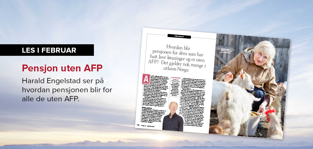 Pensjon: Hvordan blir pensjonen for dem som har hatt lave lønninger og er uten AFP? Harald Engelstad ser på denne gruppen som gjerne bor i utkant-Norge.