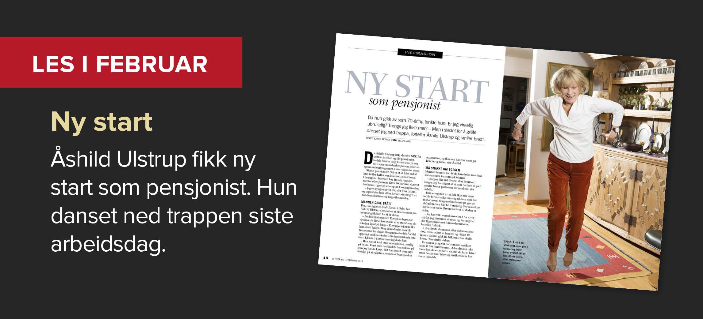 Februarutgaven av VI OVER 60 er som vanlig full av saker til både nytte, glede og inspirasjon. Noe å kose seg med mens vi venter på våren.