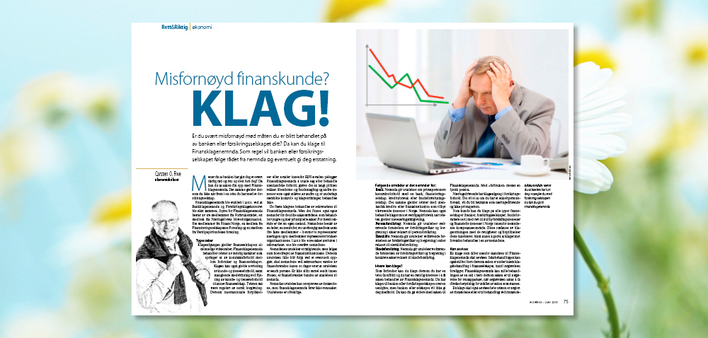 Er du misfornøyd med banken eller forsikringsselskapet ditt anbefaler vår økonomiskribent Carsten O. Five at du klager. Pensjonsrådgiver Harald Engelstad avslører feil i Nav sin pensjonskalkulator og juristene ser på hva du som bilfører kan risikere av bøter og prikker.